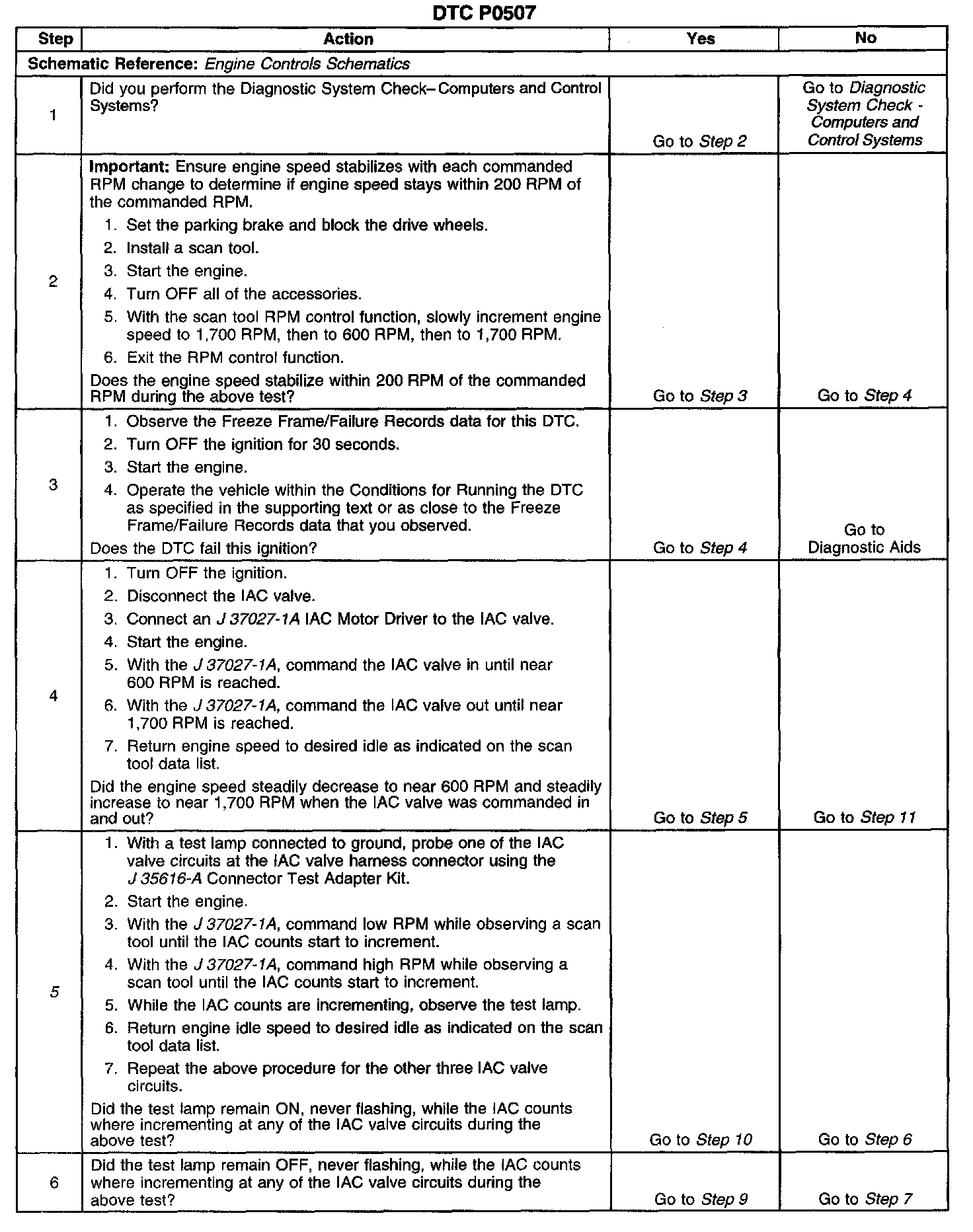 5. This test will determine the ability of the engine controller and IAC valve circuits to control the IAC valve.