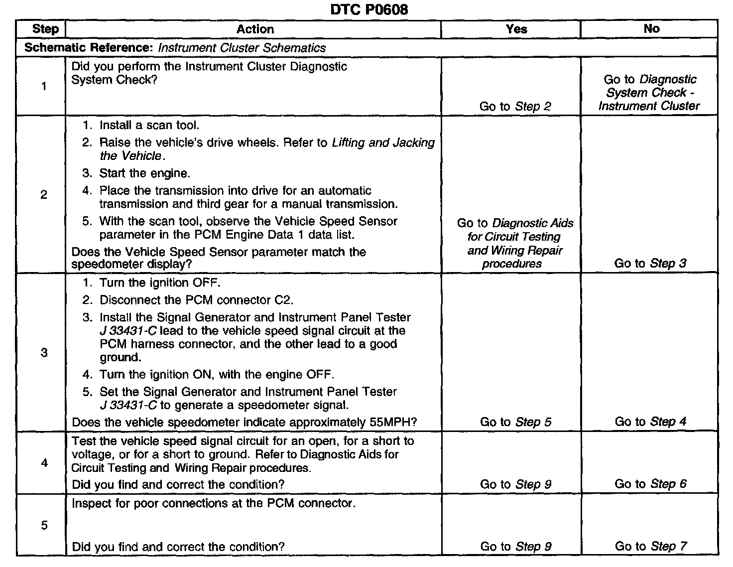 ^ The PCM detects that the voltage of the vehicle speed signal circuit is out of the normal operating range.