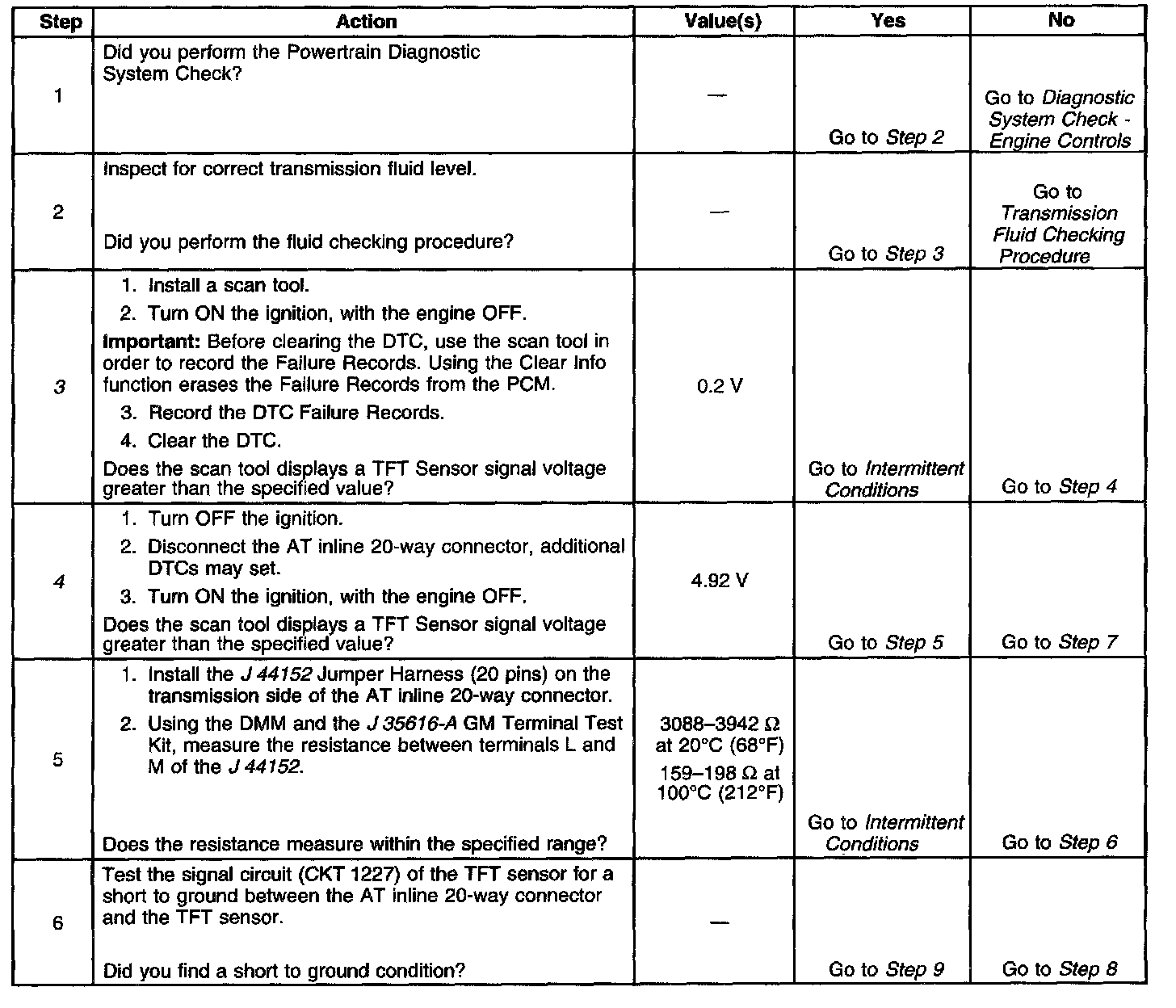 ^ The PCM calculates a default transmission fluid temperature based on engine coolant temperature, intake air temperature and engine run time. The PCM records the operating conditions when the Conditions for Setting the DTC are met.