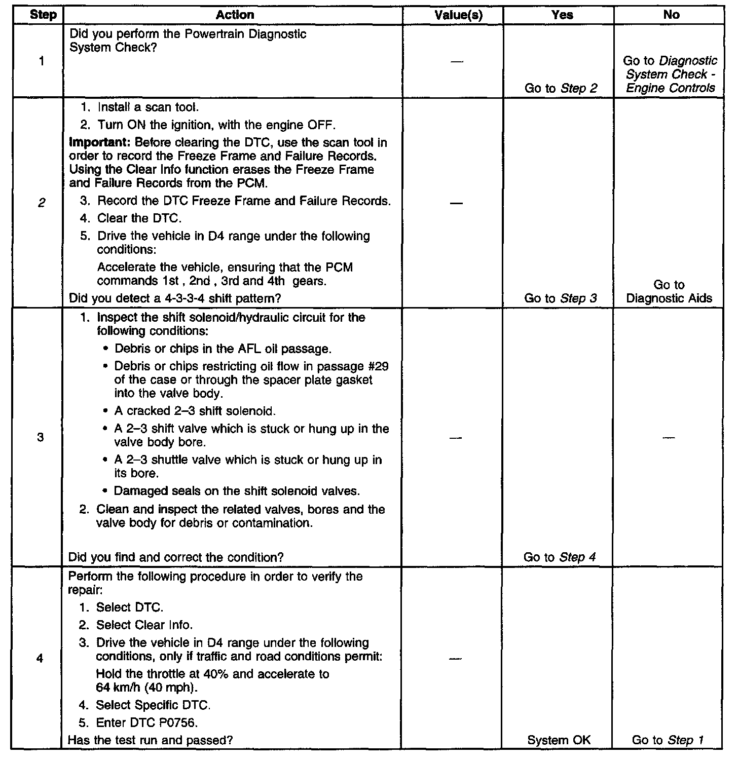 When the PCM detects a 4-3-3-4 shift pattern, then DTC P0756 sets. DTC P0756 is a type A DTC.