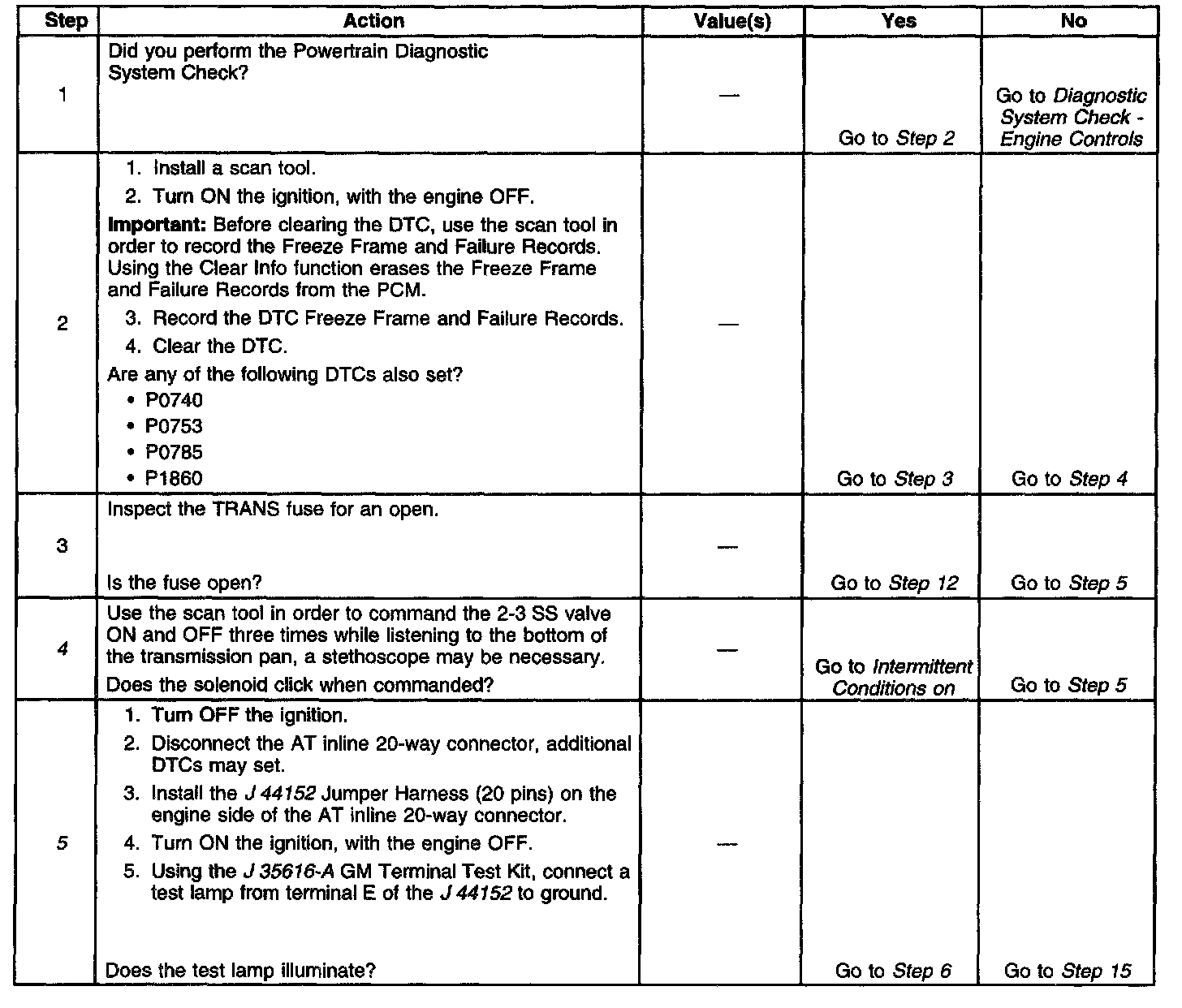 5. This step tests for power to the 2-3 SS valve from the ignition through the fuse.