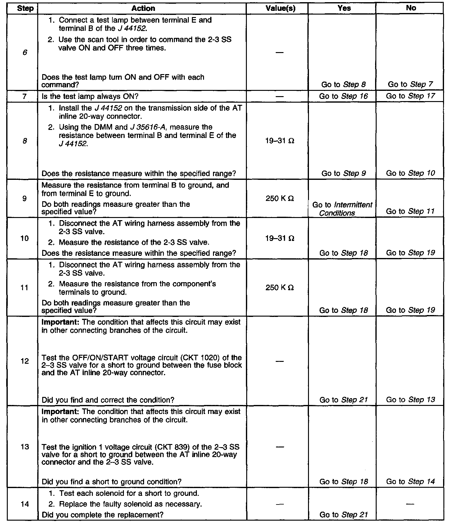 8. This step measures the resistance of the AT wiring harness assembly and of the 2-3 SS valve.
