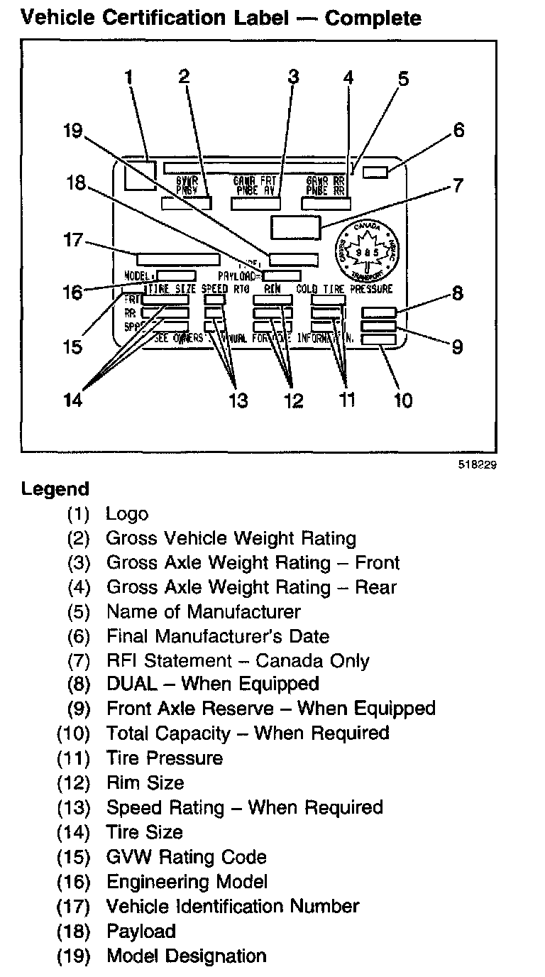 Vehicle Certification Label - Complete: