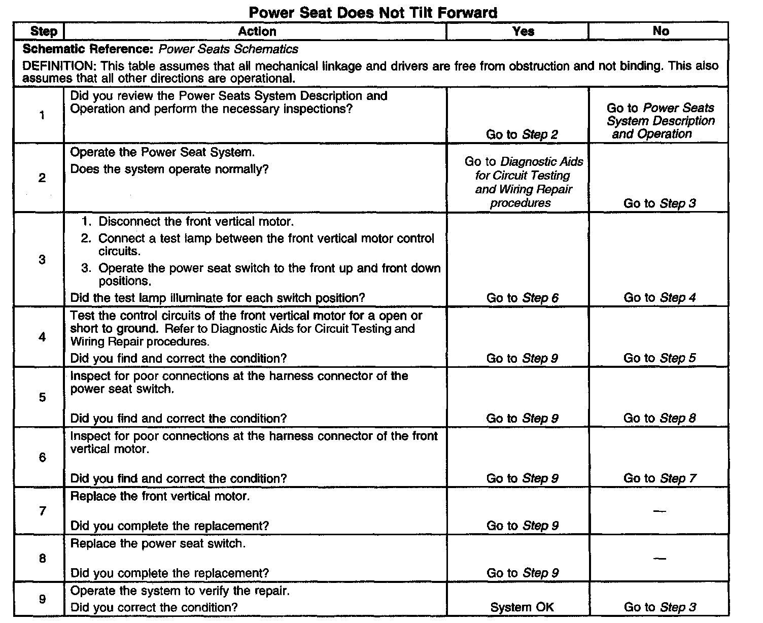 Power Seat Does Not Tilt Forward