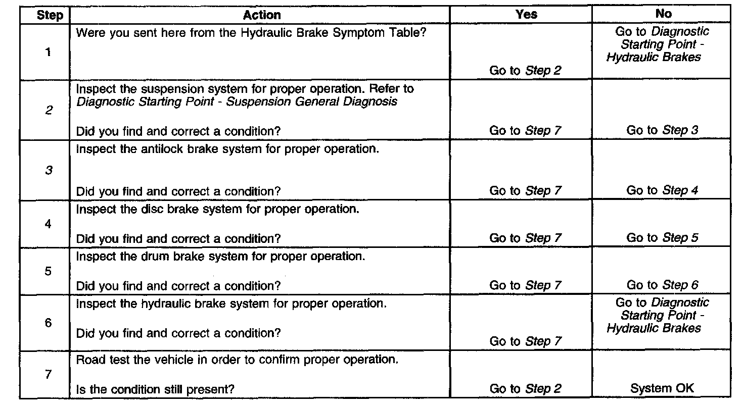 2. Suspension components that are not operating properly may cause a disturbance to the vehicle during application of the brake system.