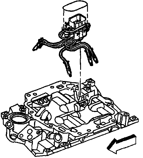 28. Install the ECT sensor or plug, if equipped, into the front of the lower intake manifold.