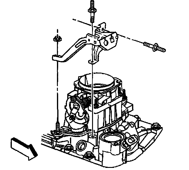 38. Install the accelerator control cable bracket, the studs, and the nuts.