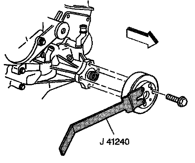1. Remove the bolts and the fan and water pump pulley using the J41240.