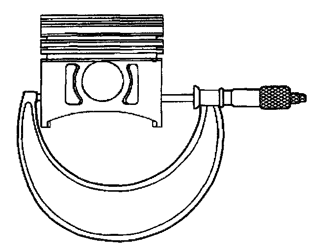 3. With a micrometer or caliper at a right angle to the piston pin bore, measure the piston 11 mm (0.433 inch) from the bottom of the skirt.