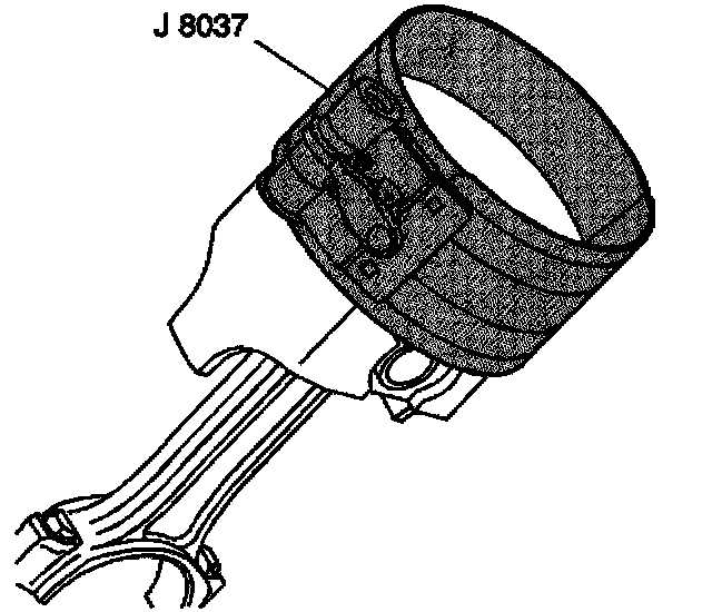 3. Install the J8037 onto the piston and compress the piston rings.