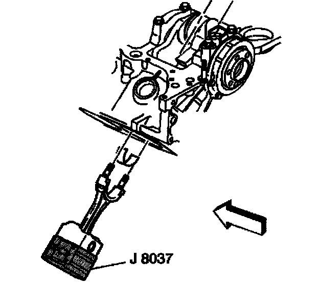 4. Install the piston and connecting rod assembly, and the J8037 into the proper cylinder bore.