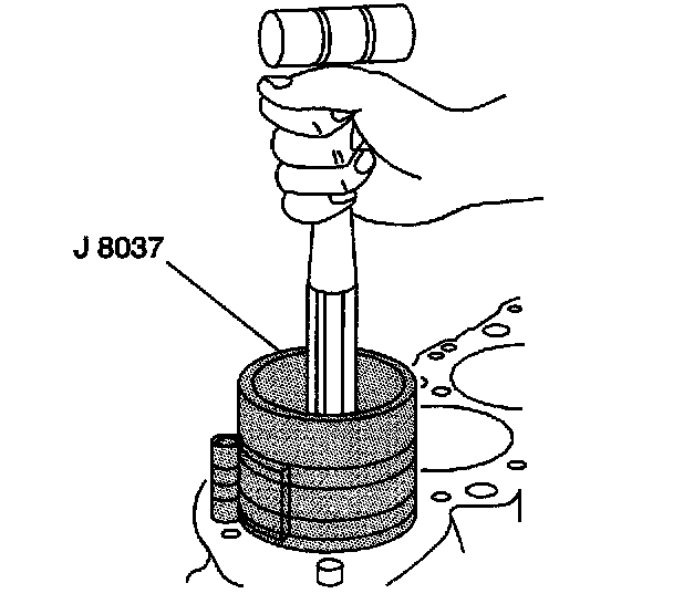 5. Use the J8037 and the J5239 and lightly tap the top of the piston with a wooden hammer handle.