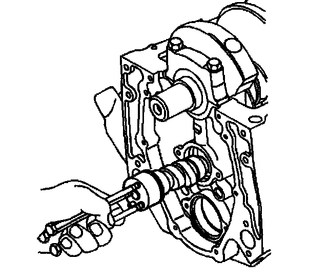 4. Remove the 3 bolts from the front of the engine camshaft.