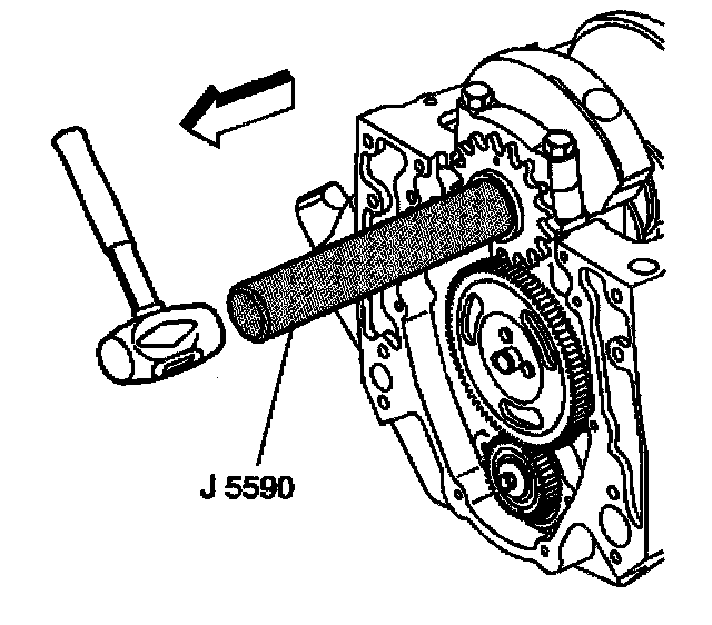 3. Use the J5590 in order to install the crankshaft sprocket.