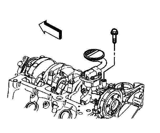 4. Install the oil pump bolt attaching the oil pump to the rear crankshaft bearing cap.