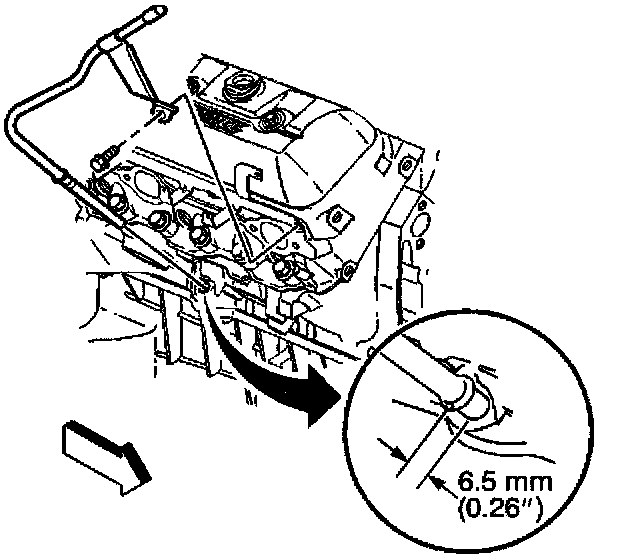 Oil Level Indicator and Tube Installation1. Apply sealant GM P/N United States 12346004, GM P/N Canada 10953480, or equivalent, around the oil level indicator tube 13 mm (0.5 inch) below the tube bead.