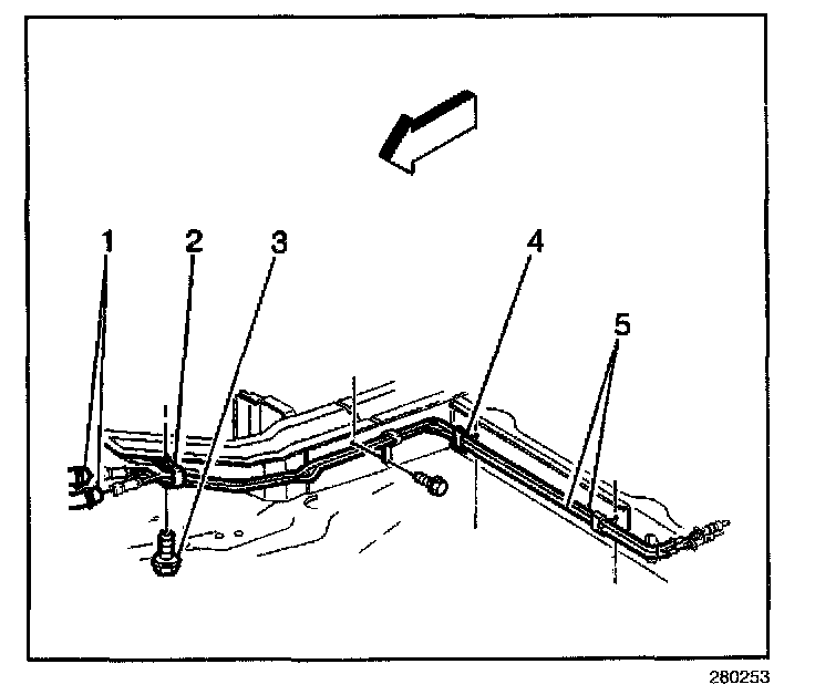 5. Connect the auxiliary heater front pipes (5) to the rear pipes.