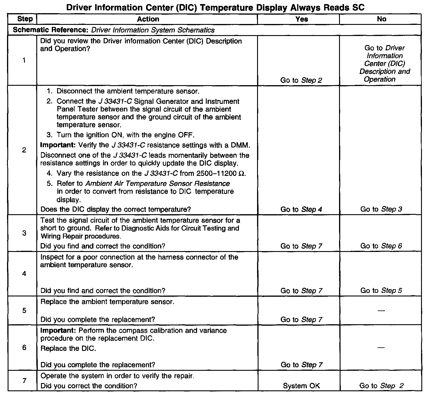 DIAGNOSTIC AIDS^ The DIC displays SC when there is a shorted condition within the system.