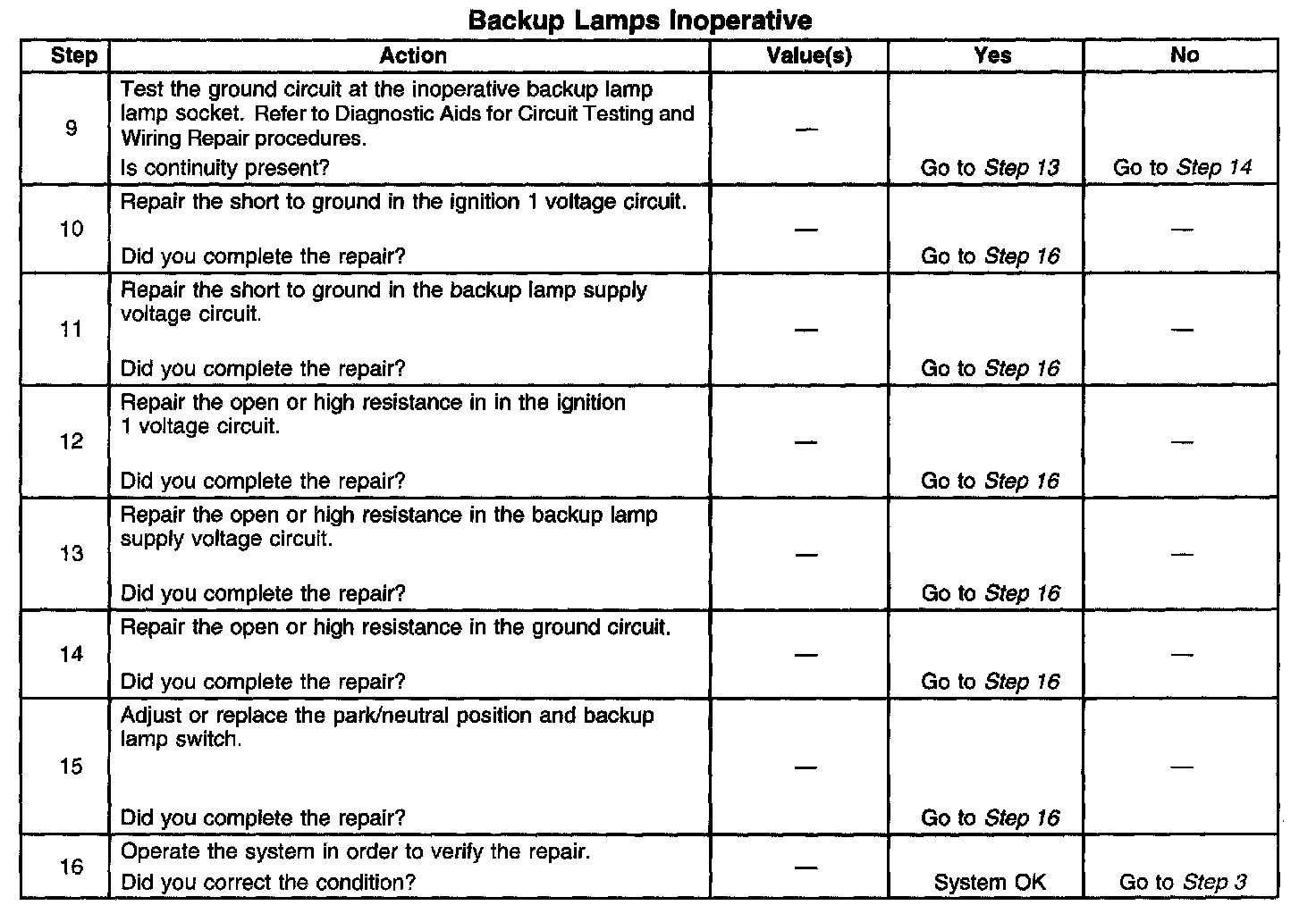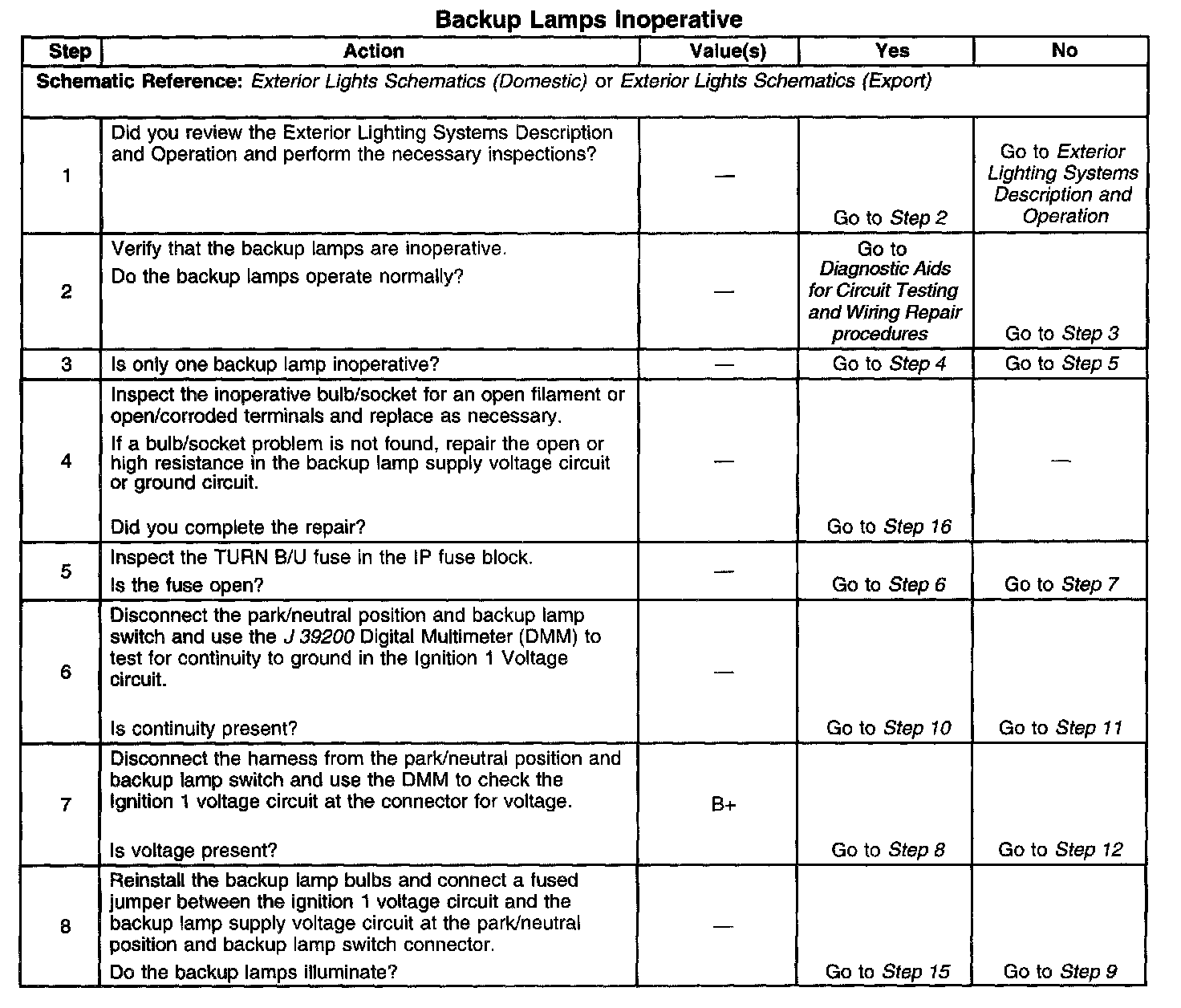 Backup Lamps Inoperative