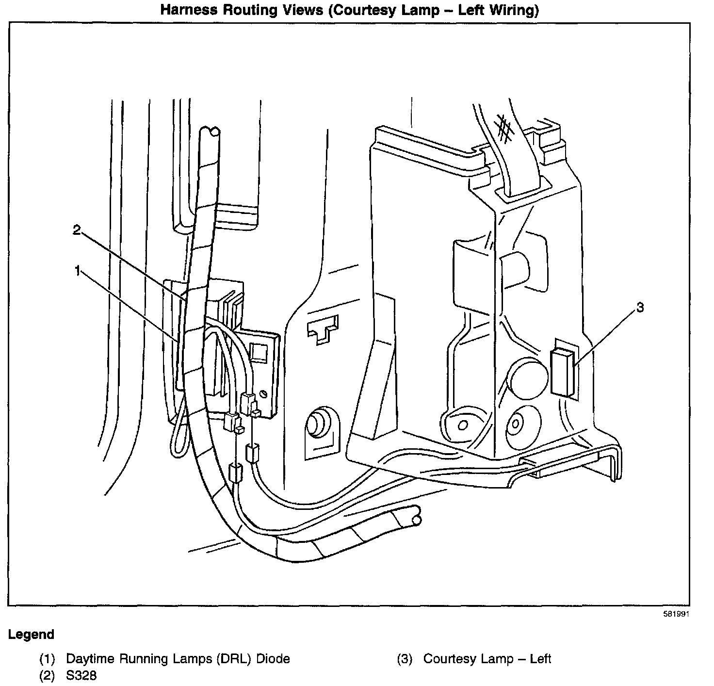 Harness Routing Views (Courtesy Lamp - Left Wiring):