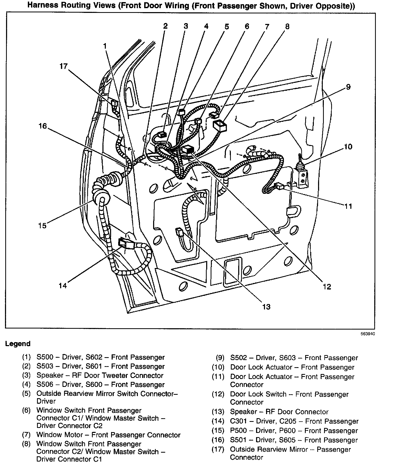 Harness Routing Views (Front Door Wiring (Front Passenger Shown, Driver Opposite)):
