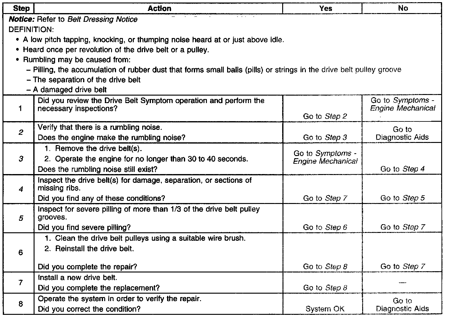 Drive Belt Rumbling DiagnosisDiagnostic Aids