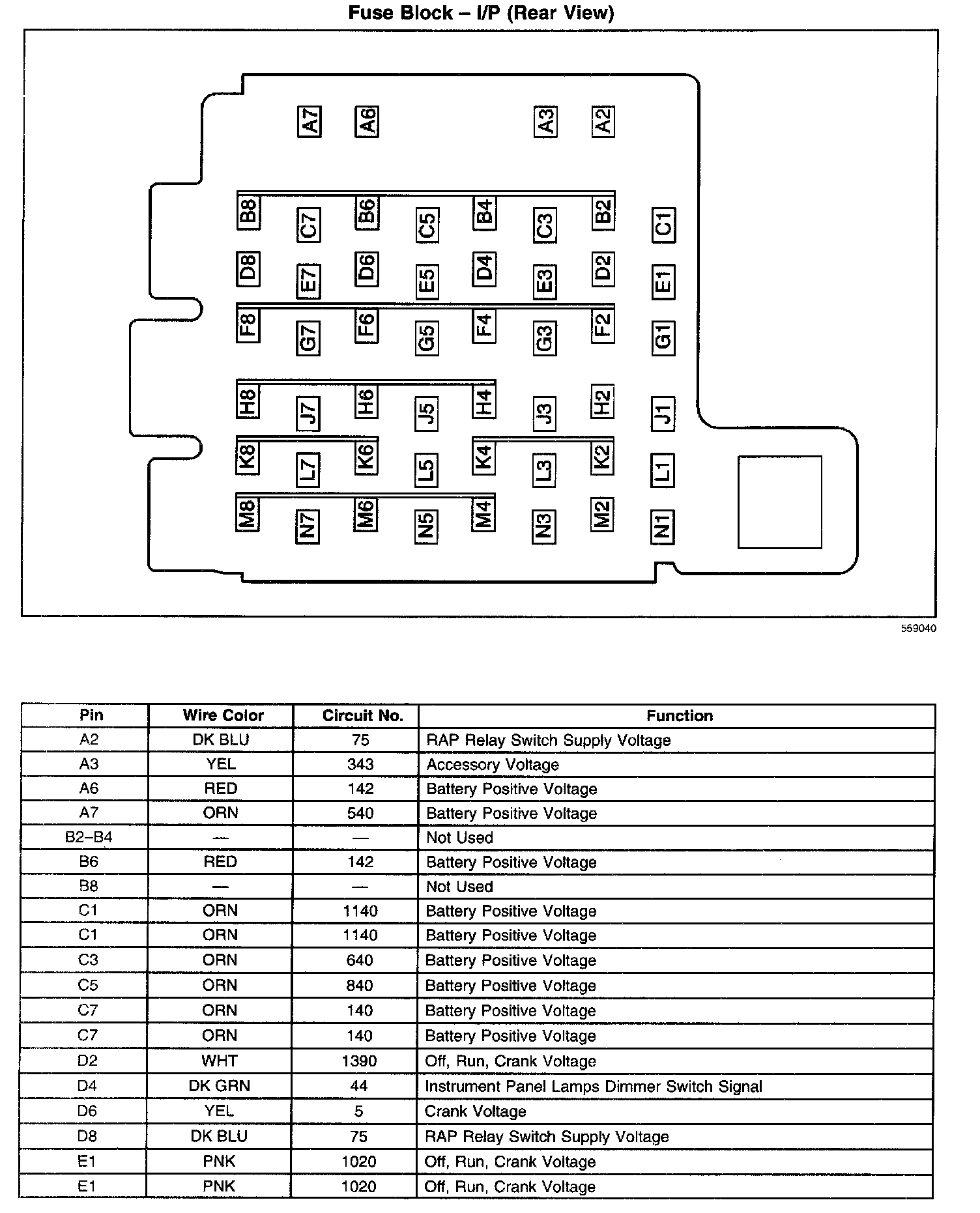 Fuse Block I/P (Rear View)