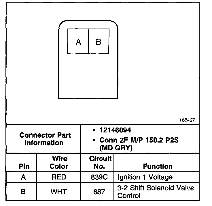 1-2 Shift Solenoid Valve Connector, Wiring Harness Side: