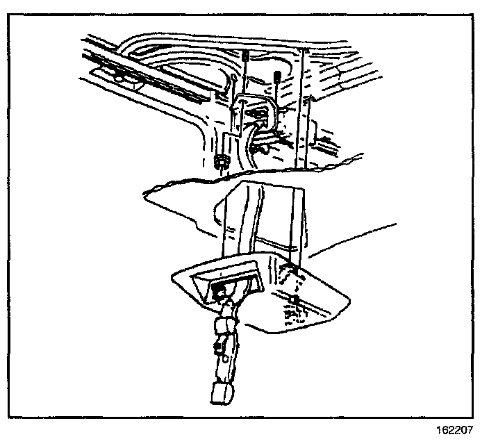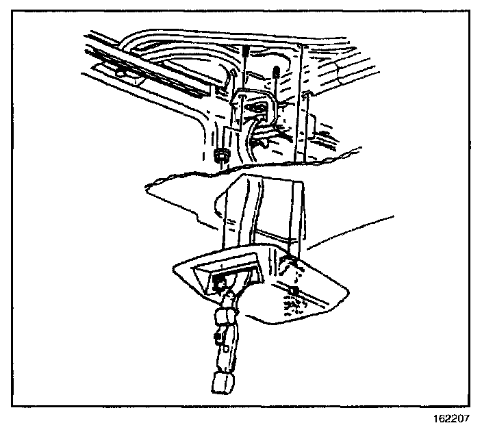 3. Remove the rear seat belt retractor nuts from the roof reinforcement.
