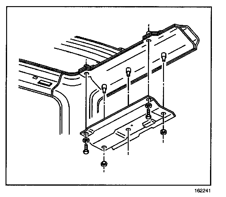 1. Install the rear seat shoulder belt reinforcement to the roof.