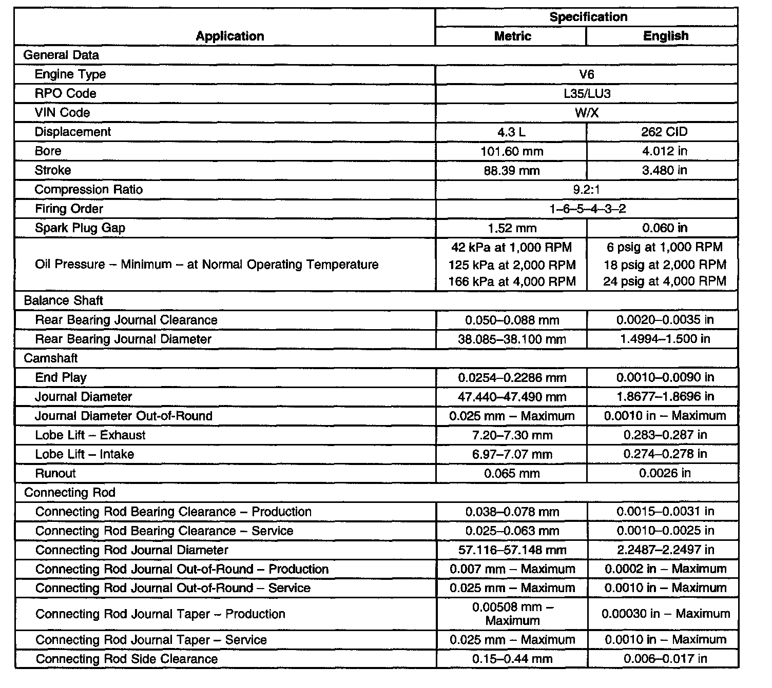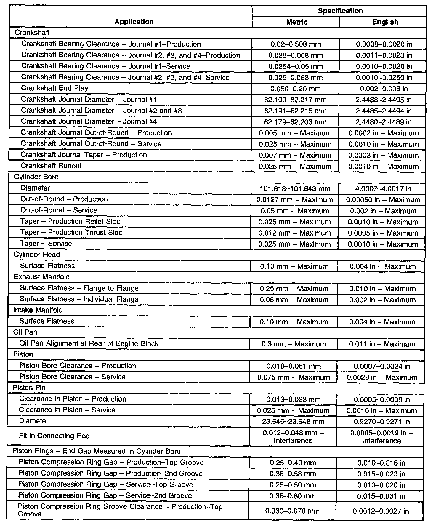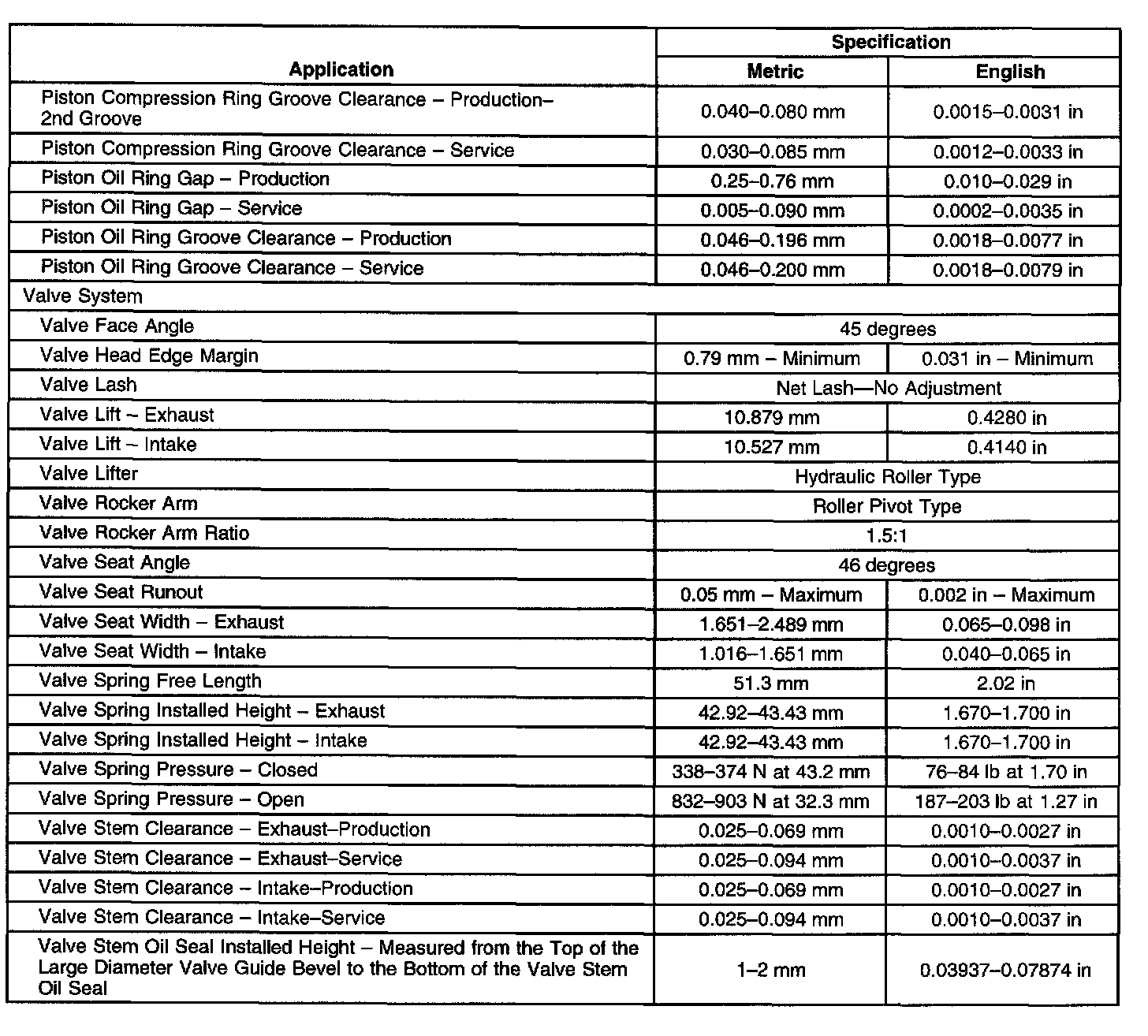 Engine Mechanical Specifications