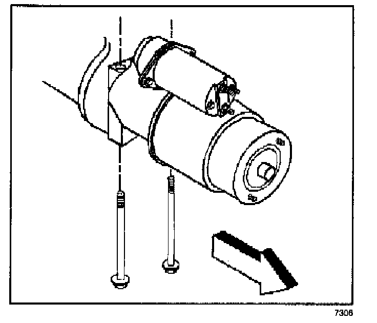 3. Remove the starter motor mounting bolts.