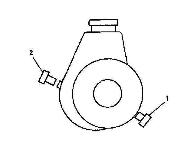 2. Install the plugs (1,2) supplied with the J 43485 into the pressure and return port.