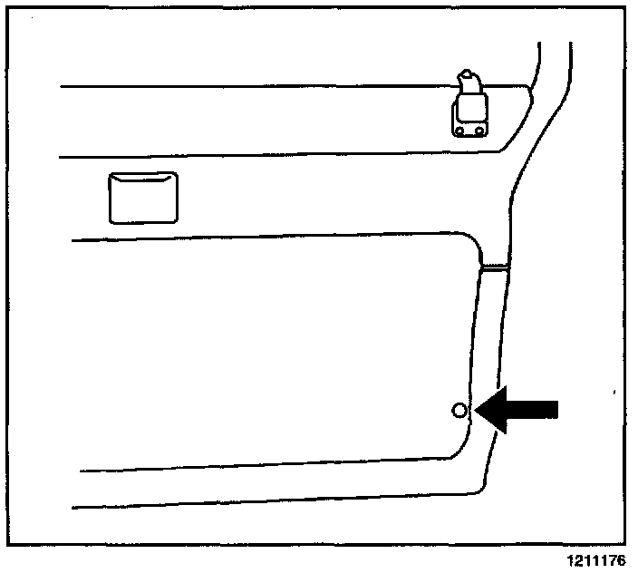 1. With the door closed, measure 51 mm (2 in) up from the perimeter of the carpet and 25 mm (1 in) from the back of the edge of the carpet.