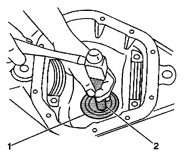1. Install the outer pinion bearing cup using the J 7817 (2) and the J 8092 (1).