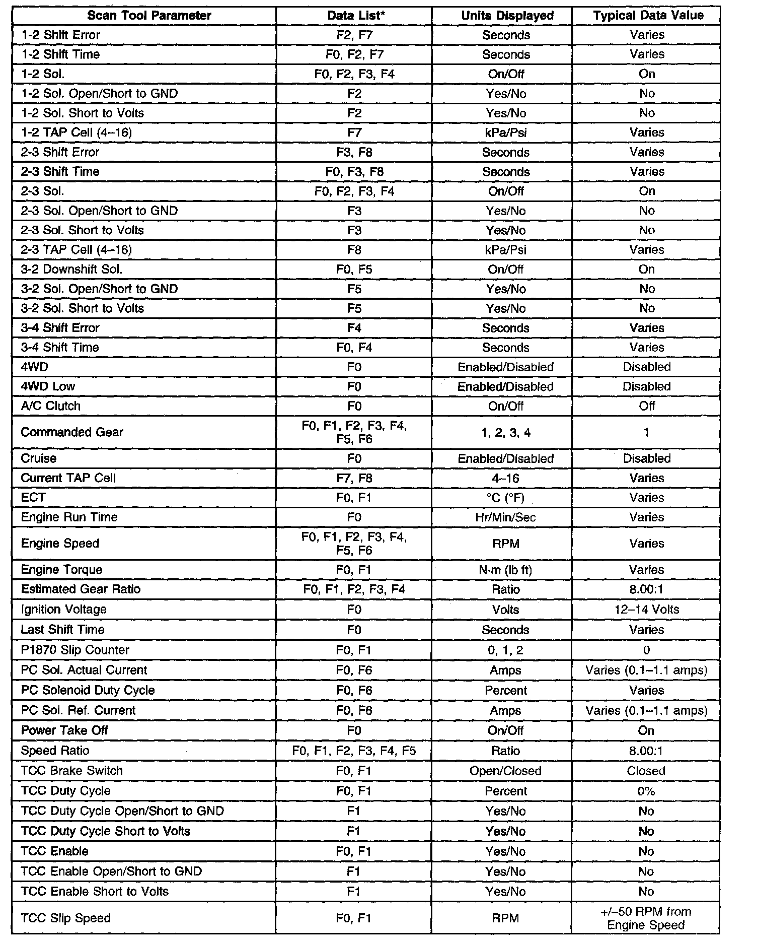 Transmission Scan Tool Data List