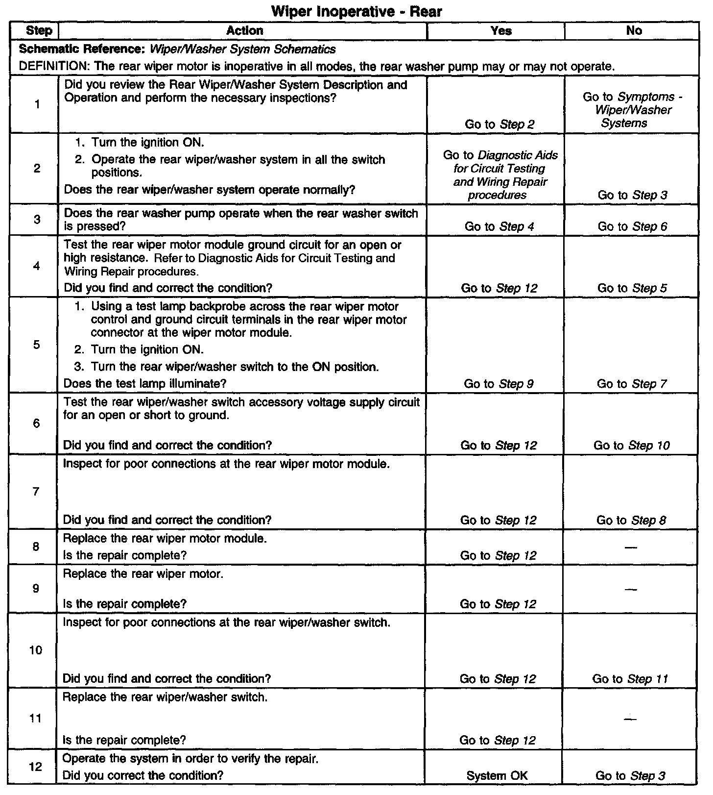 Wiper Inoperative - Rear
