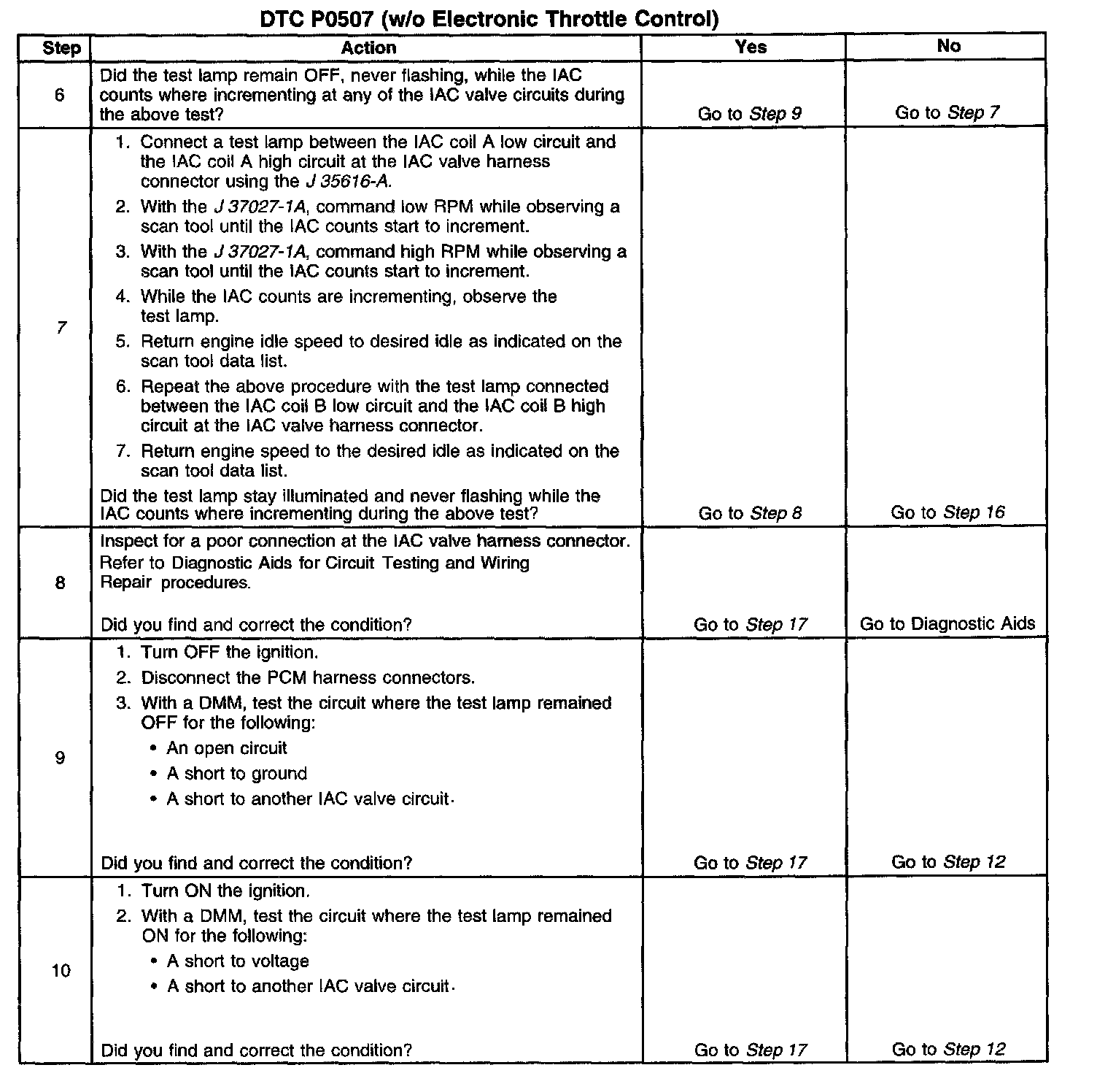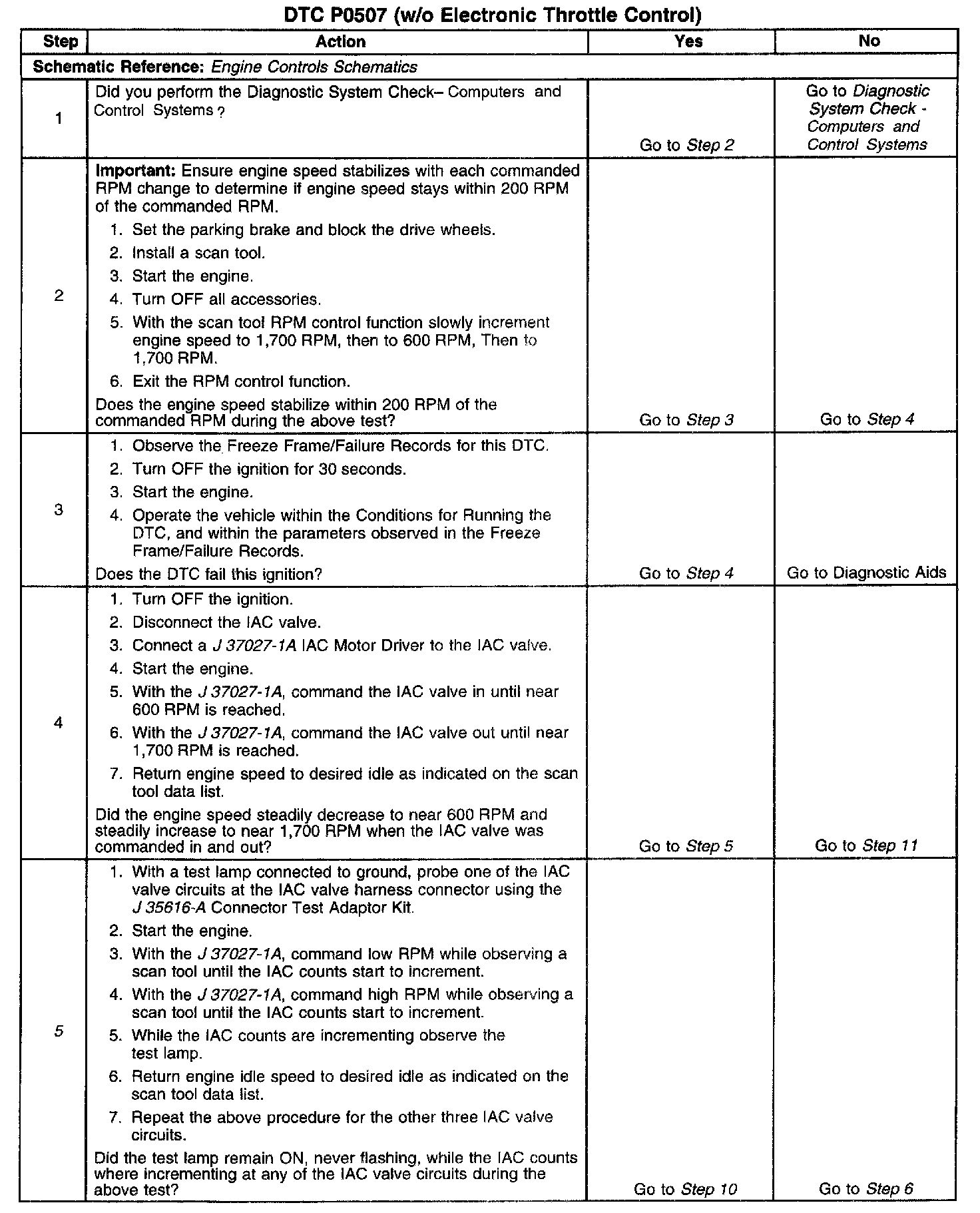 5. This test will determine the ability of the Engine Controller and IAC valve circuits to control the IAC valve.
