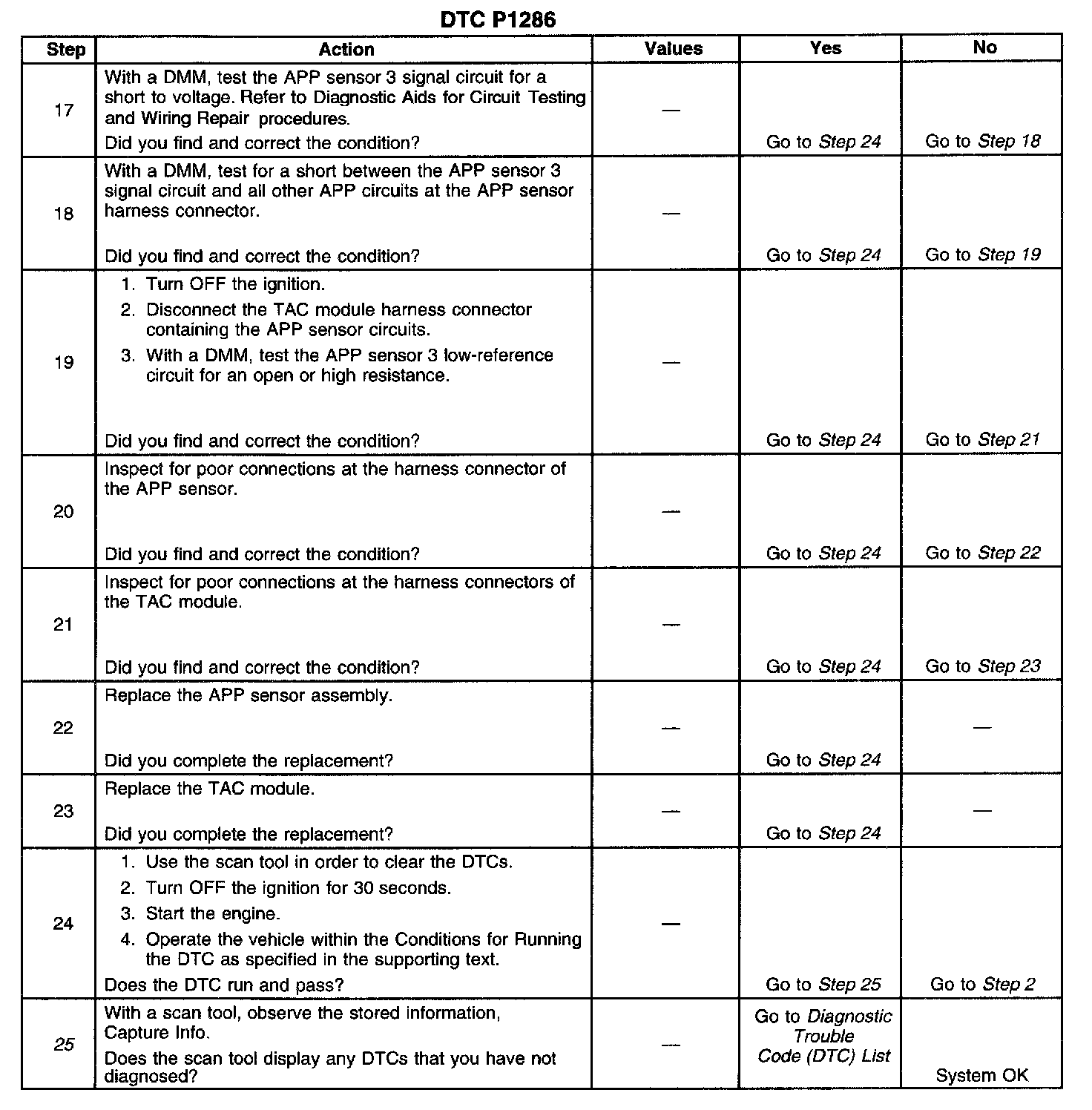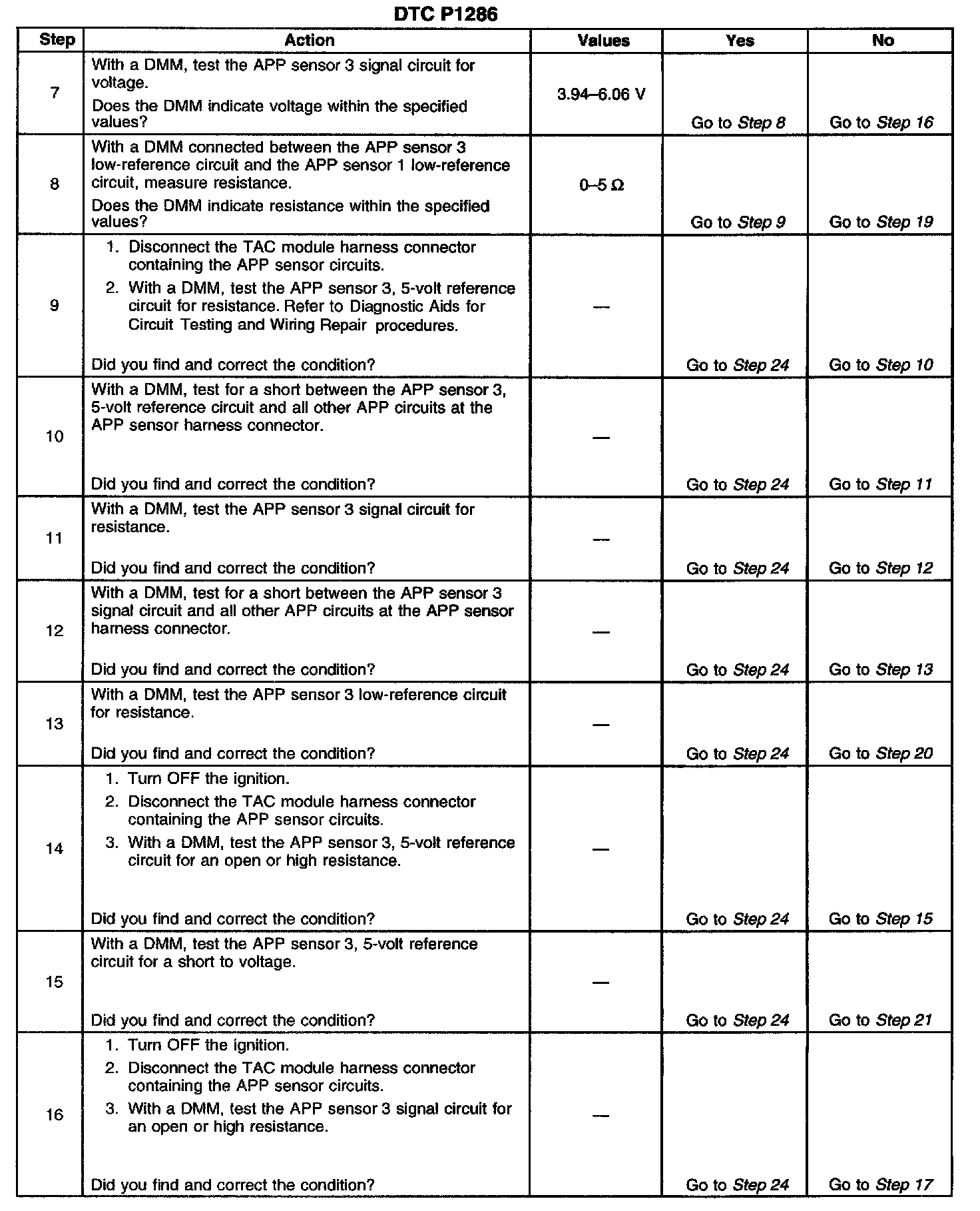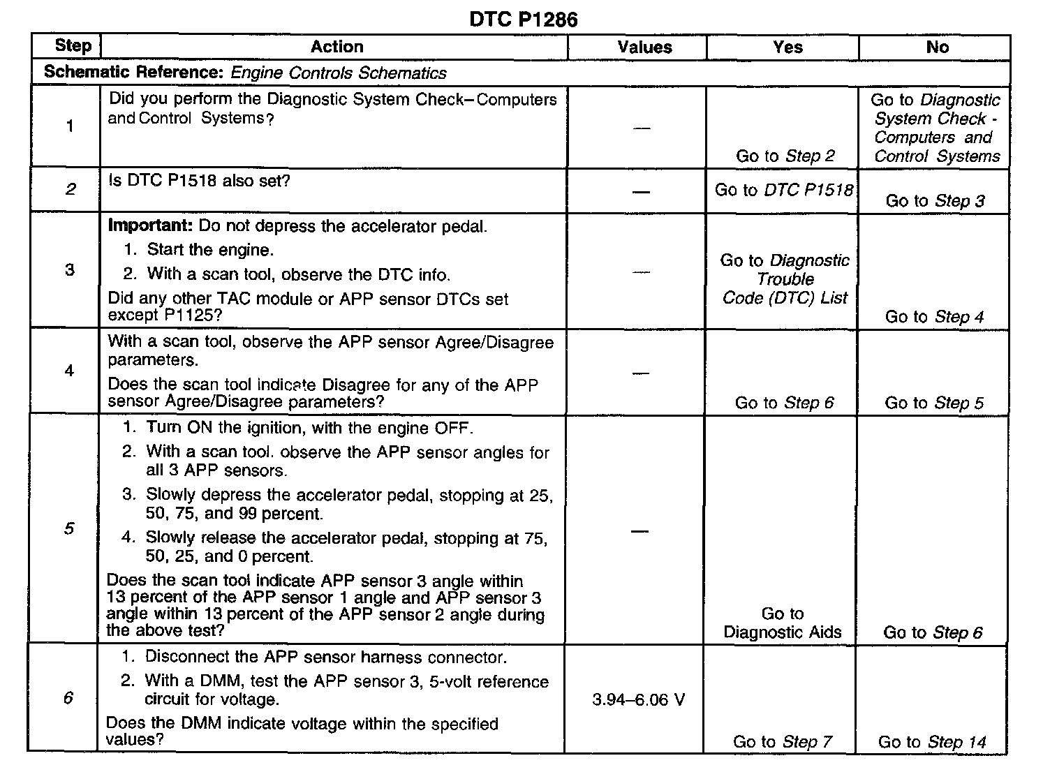 ^ When the TAC module detects throttle movement with a DTC P1285 set, a DTC P1286 also sets.