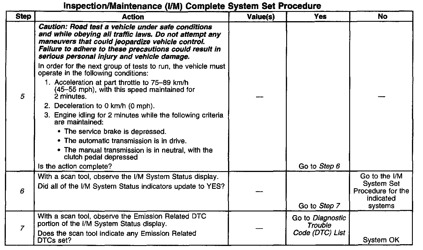 7. The I/M System Status only reports on whether a diagnostic has run, not the outcome of the test. If any emission-related DTC sets after the tests are complete, the DTC will require diagnosis.