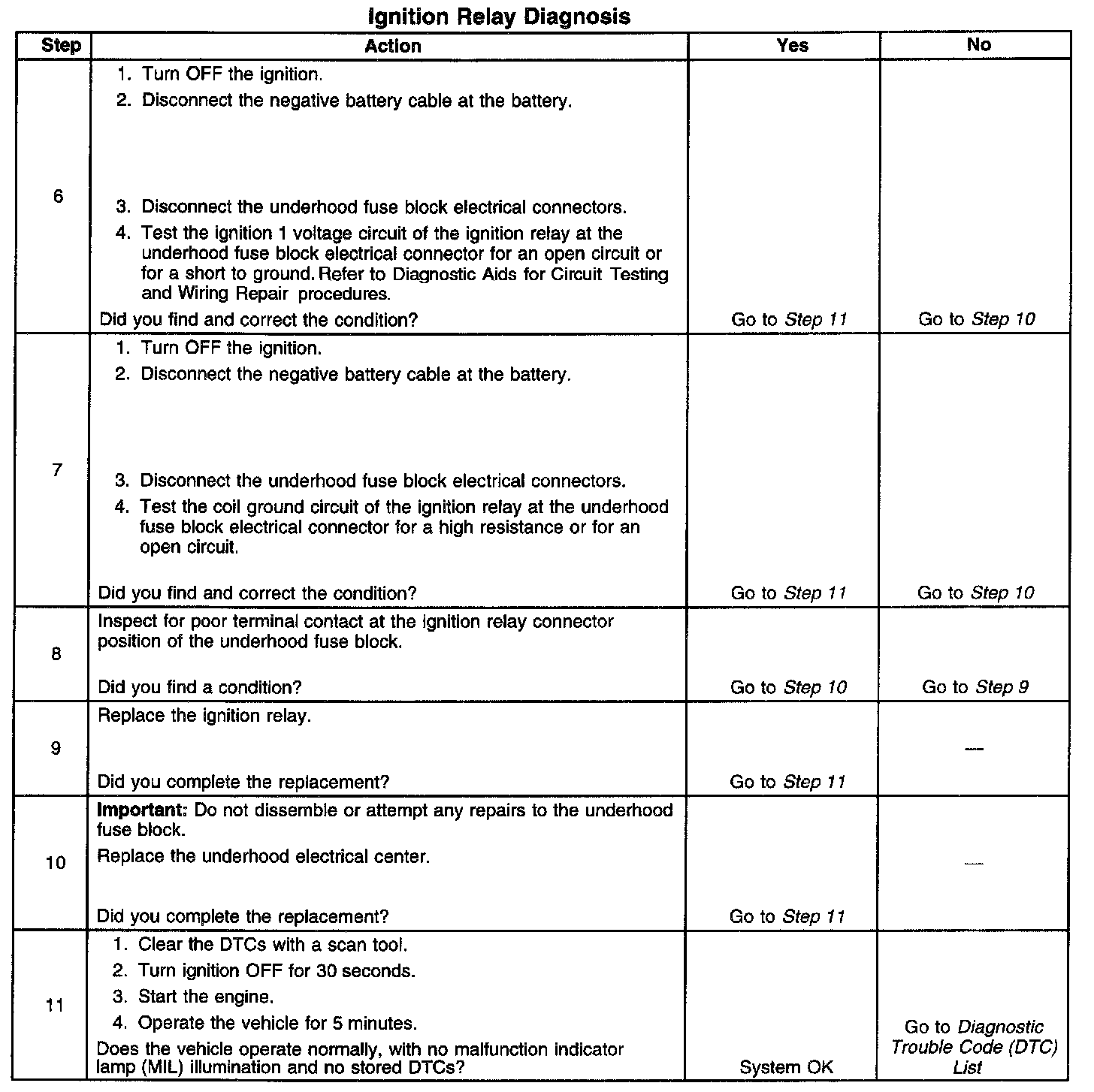 5. This step isolates the circuits from the ignition relay. All of the circuits at the relay are good if the test lamp illuminates.