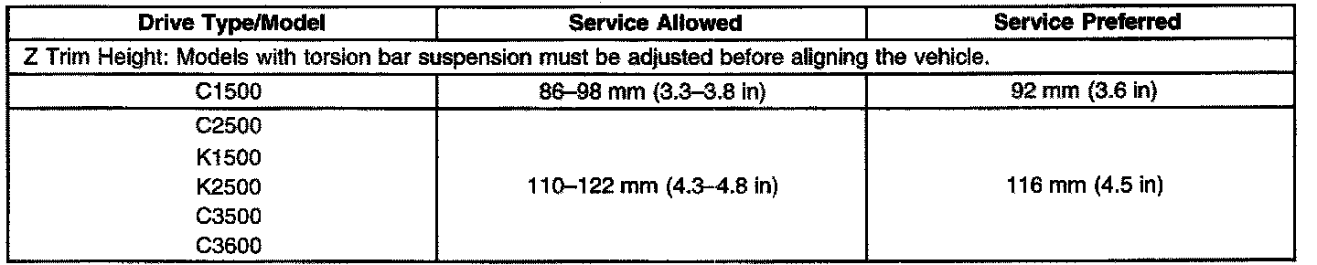 Trim Height Specifications