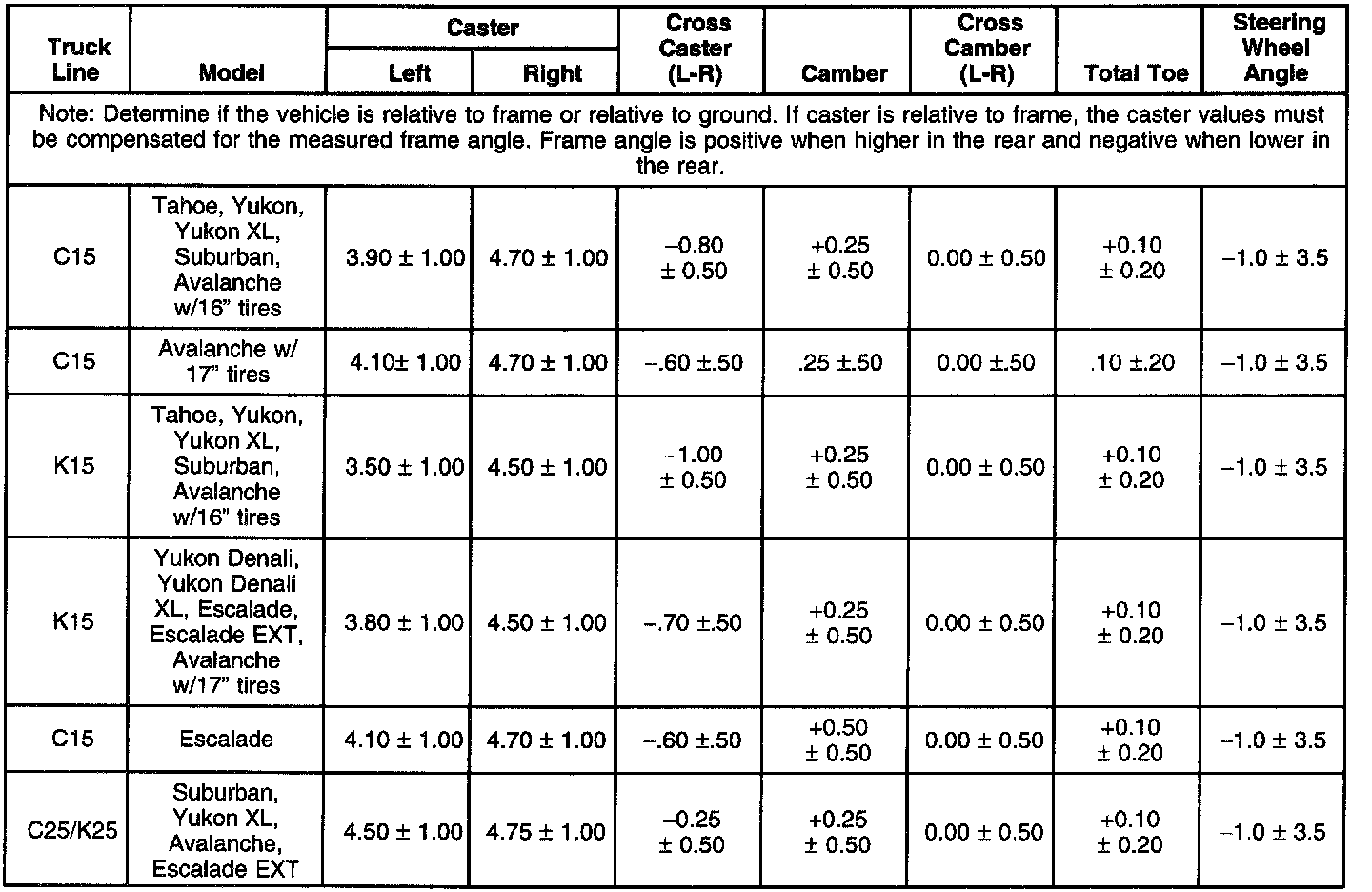 Wheel Alignment Specifications