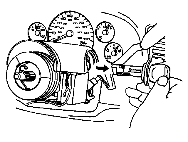 8. Remove the ignition lock cylinder by pulling the ignition lock cylinder away from the steering column.