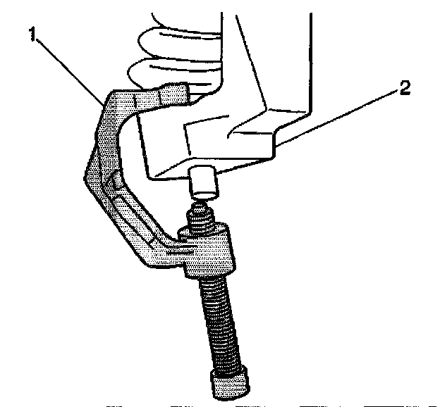 10. Disconnect the lower ball joint stud from the steering knuckle using J43631 (1).