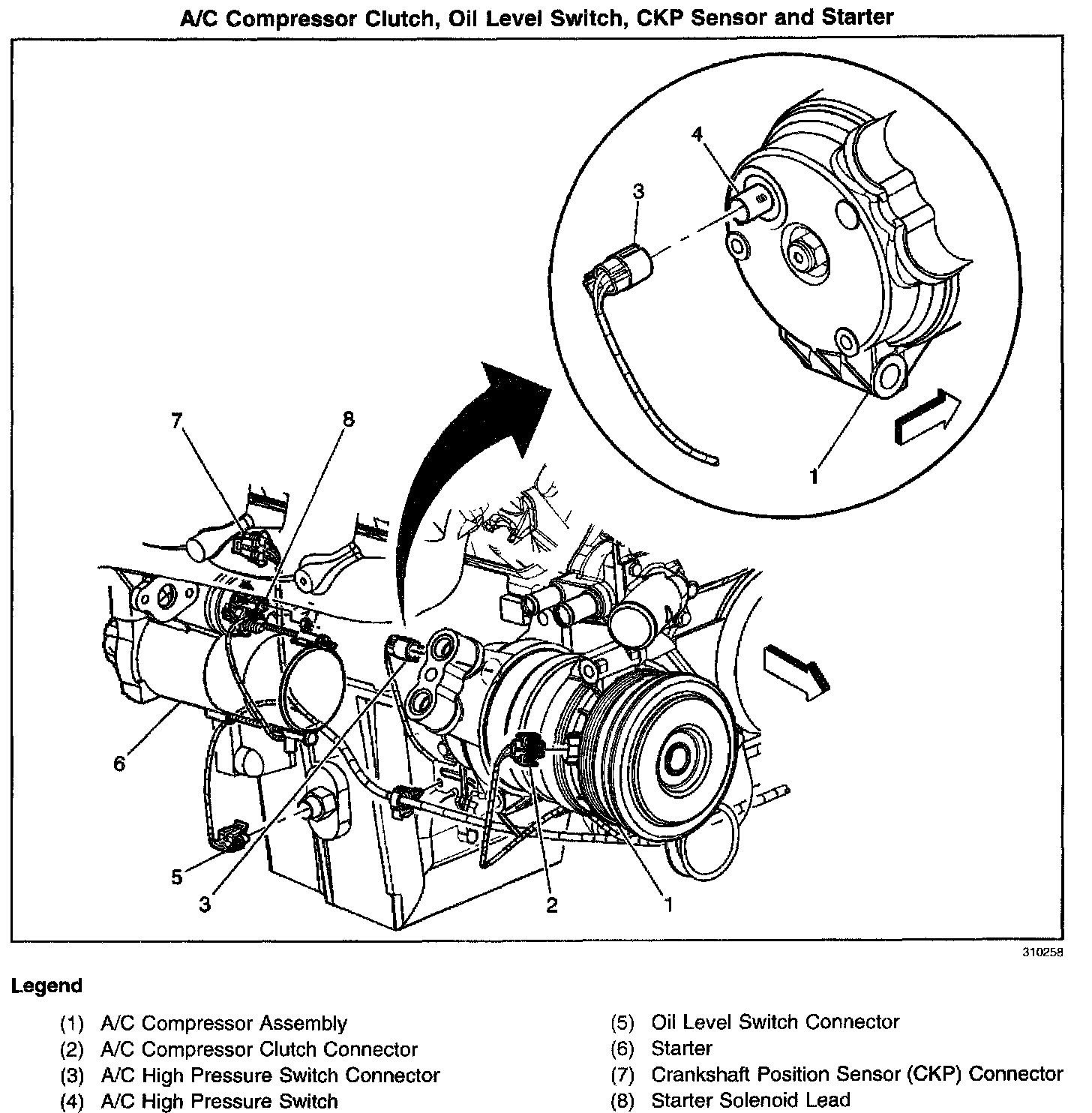 A/C Compressor Clutch, Oil Level Switch, CKP Sensor and Starter