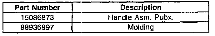 Handle replacement requires that the upper molding (Spoiler) be removed. Engineering has determined that this molding be replaced if removed. When ordering the handle also order the molding listed below.