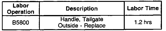Replace the rear handle. Refer to the Handle Replacement - End Gate procedure in the Body Rear End sub-section of the Service Manual for end gate handle replacement (SI 2000 Document ID # 827396).