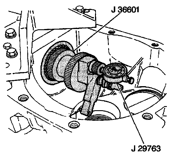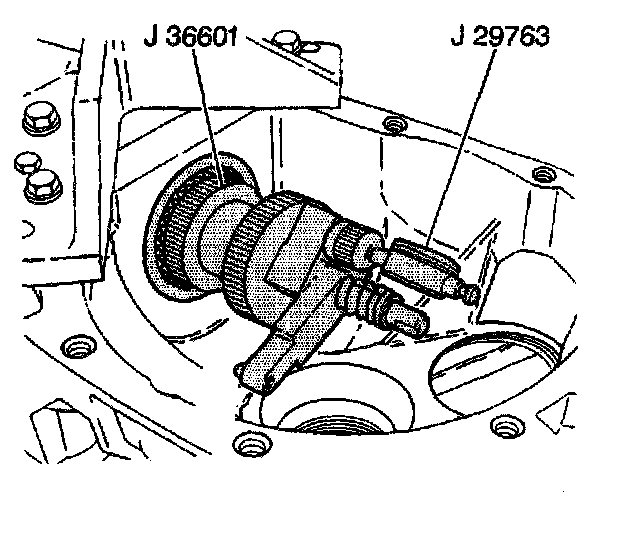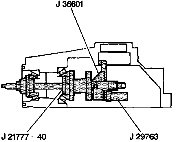 4. Insert the J 36601-7 through the pinion bearings.