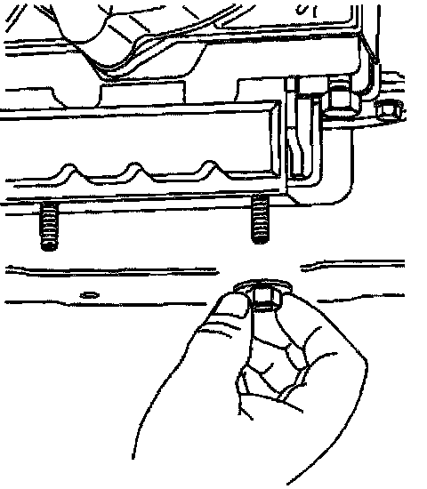 10. Lower the transmission assembly slightly to gain access to the transfer case to the transmission bolts.